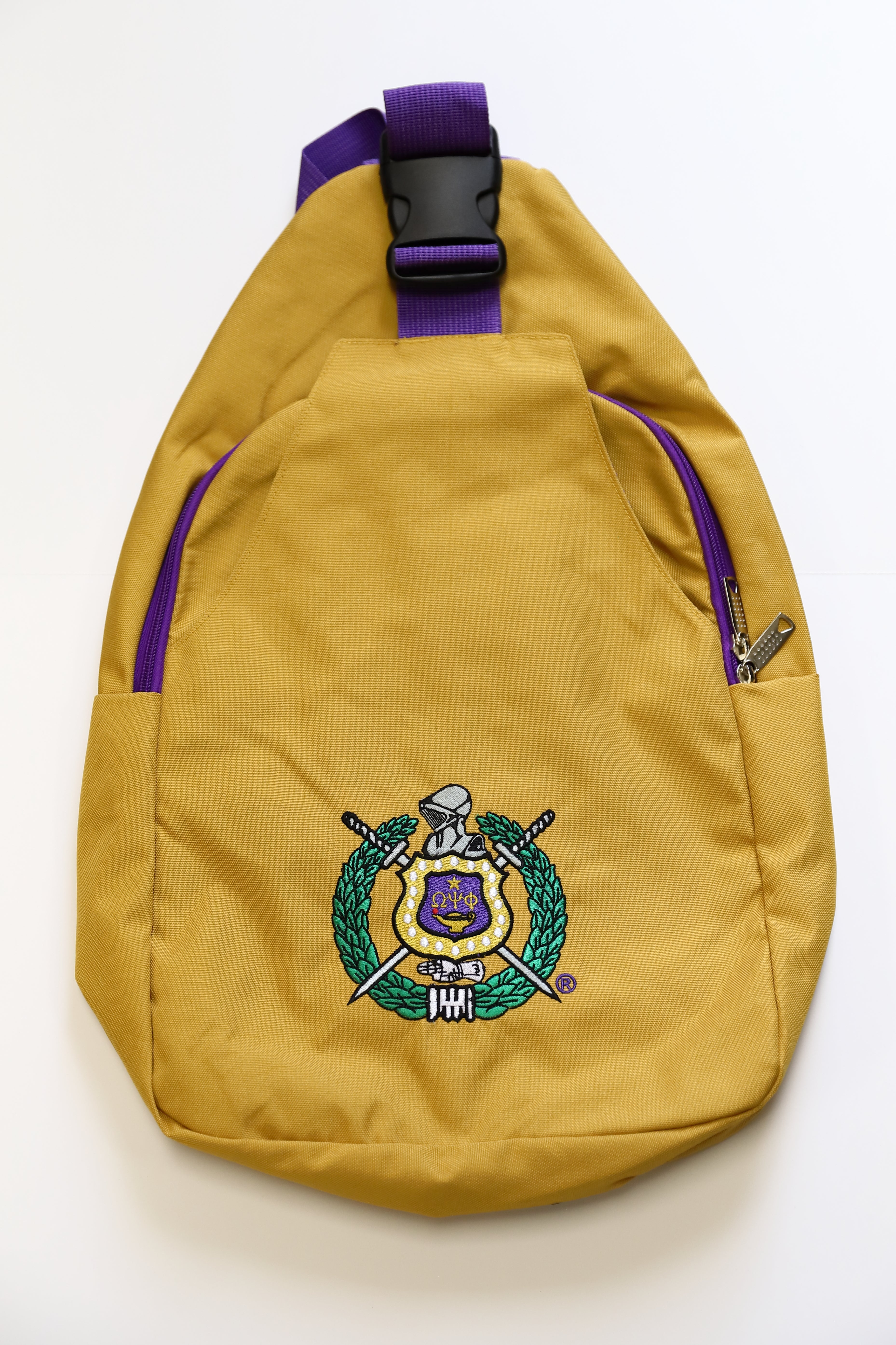 Omega Old Gold Embroidered Sling Bag