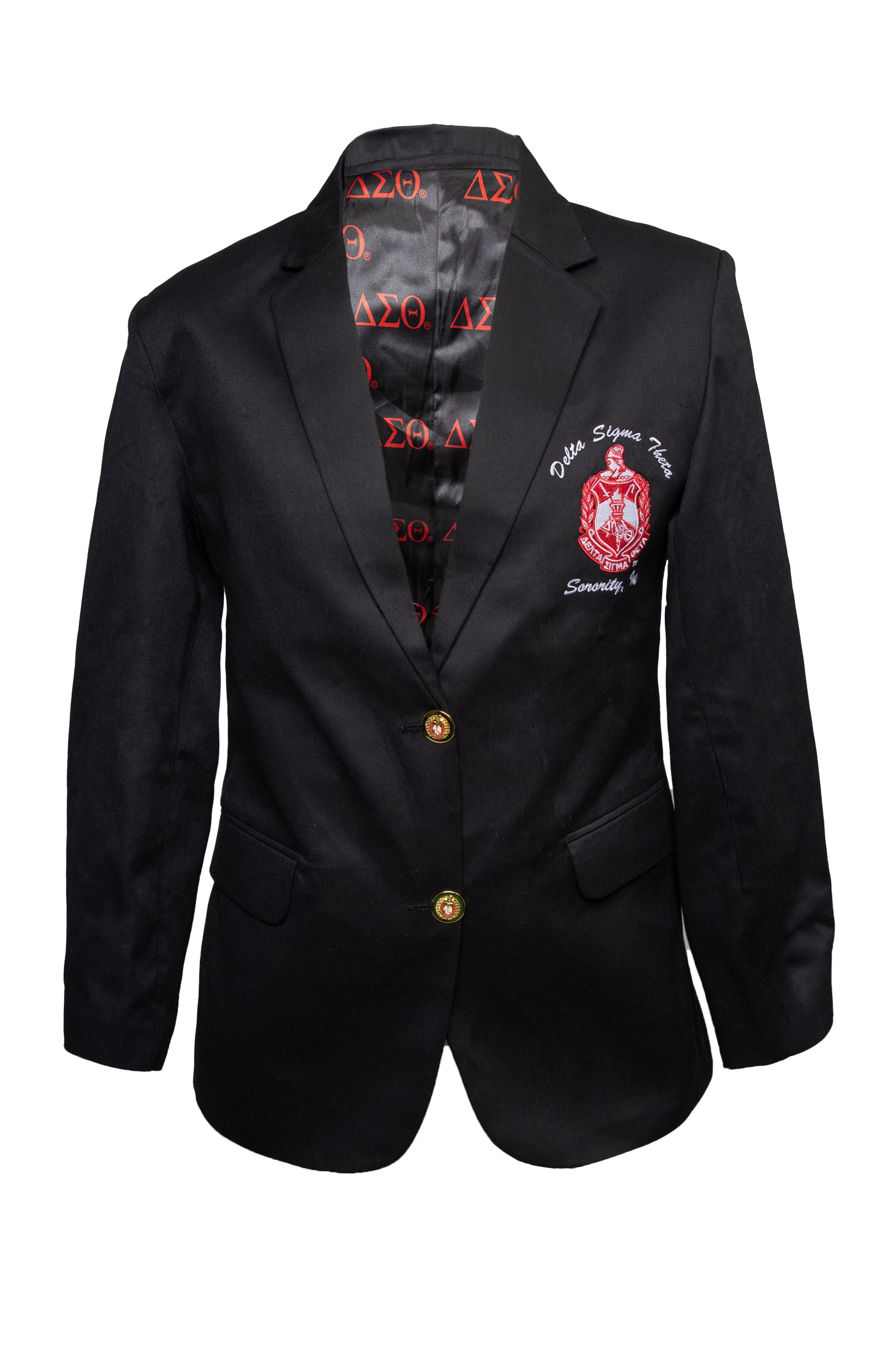 Ladies cut Blazers with custom lining and custom buttons with Sorority Shield